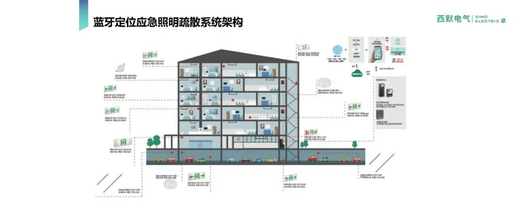这个能体现出我们在里面有3个很重要的创新点,也跟大家伙儿一起来分享一下,我们在行业内为何需要做这样的创新?西默的蓝牙定位应急照明疏散,我们在应急灯具方面植入了蓝牙定位,包括我们的数据和算法,其实我们已在总部办公楼搭建了应用的场景,可以为我们未来在消防应急的时候,能够给大家提供更多的定位和救援的功能,为我们项目未来的使用空间提供更多的应用。