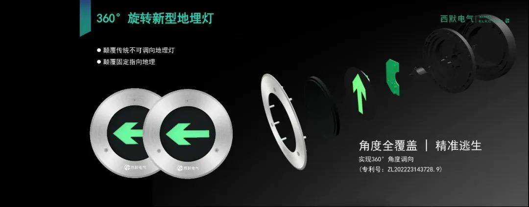 第二个创新点就是我们的带旋转箭头的地埋灯,这一块也是属于公司创新的新型成果,这也是我们在行业内首创的应用领域。它是带旋转箭头的一个模式,能够解决现场很多安装、还有就是双箭头导致误导导向的运用。