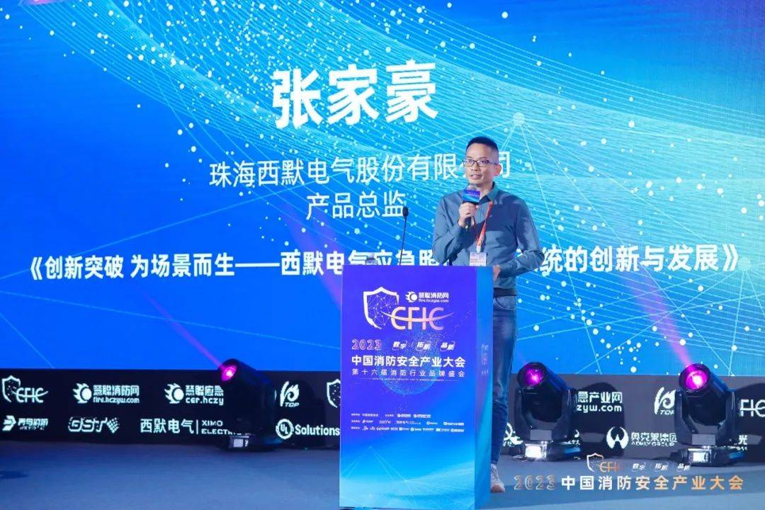 珠海西默电气股份有限公司产品总监张家豪在本次大会分享主题报告《创新突破 为场景而生——西默电气应急照明疏散系统的创新与发展》。