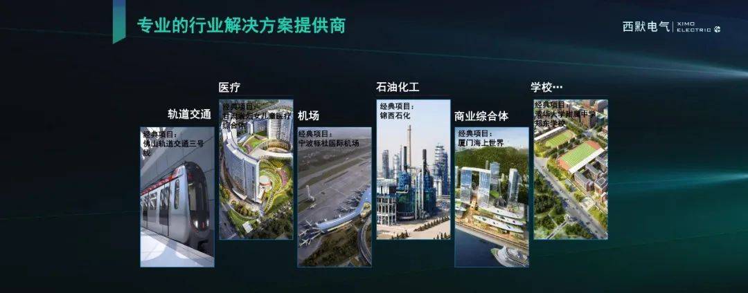 以上就是我们西默的一些合作的企业,也是未来也会长期合作的一些大型的一些央企、国企,还有就是行业的一些领先的企业。西默电气就是重点做了一些项目案例,包括部分轨道交通方面、大型公建方面的应用解决方案。