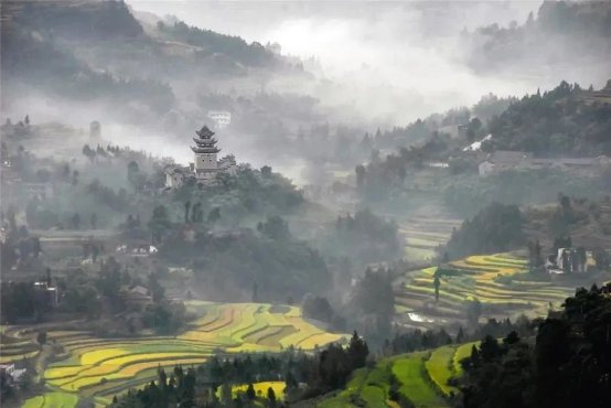 在拂晓古村散步明清石板路,指尖轻抚盐马古道的年月痕迹;在彭氏宗祠停步雕花窗棂前,听族老叙述 明三暗五 的防护才智;到彭家老屋感触九进宅院依地形弯曲,15个天井如星斗落于土宗族吊脚楼群,每根穿斗枋隐藏 暗八仙 木刻,祈愿宗族福寿连绵。
