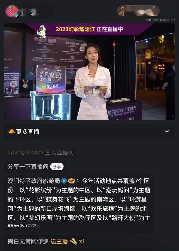 旅行局在微信小程序 - “澳门旅行局互动区”推出“2023幻彩耀濠江”互动游戏。互动区供给活动的主题、路线图及节目表等资讯,多个互动游戏分阶段在互动区推出,包含“我的幻彩回忆”、“我与澳门,耀一同”、“幻彩恣意门”。以风趣的互动方法,招引客户从线上到线幻彩耀濠江”的精彩活动内容,提高大众的参加度。