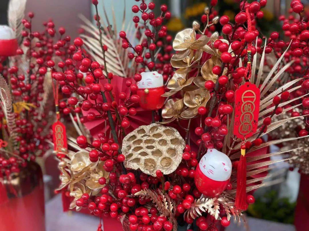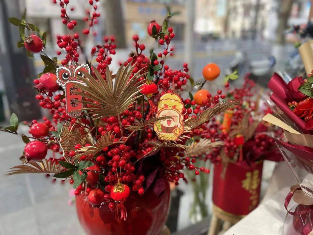 咱们花店本年也制作了许多年宵花的摆件,现在现已连续上新,现已有不少顾客前来购买。
