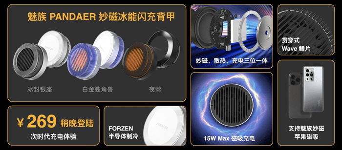 PANDAER潮电方面,魅族推出妙磁mMagnet,将适配干流磁吸生态。基于此,魅族PANDAER妙磁冰能充电背甲系列应运而生,包含魅族PANDAER妙磁冰能闪充背甲和它的“快充增强版”魅族PANDAER 40W妙磁冰能超充背甲。