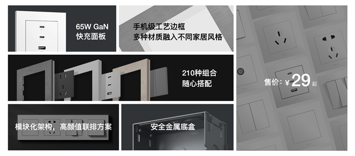 此外,lipro还带来一款重磅产品——初次选用模块化规划的lipro开关面板。它可供给多达210种的模块化定制选项,外观经过金属、玻璃原料的突破性融入,可以与多种风格家居环境的完美调配。一起,lipro还供给二联、三联、四联、五联组合开关,以及业界首款65W内嵌式USB快充模块,极大节省插头占用空间,让桌面更整齐、精约。
